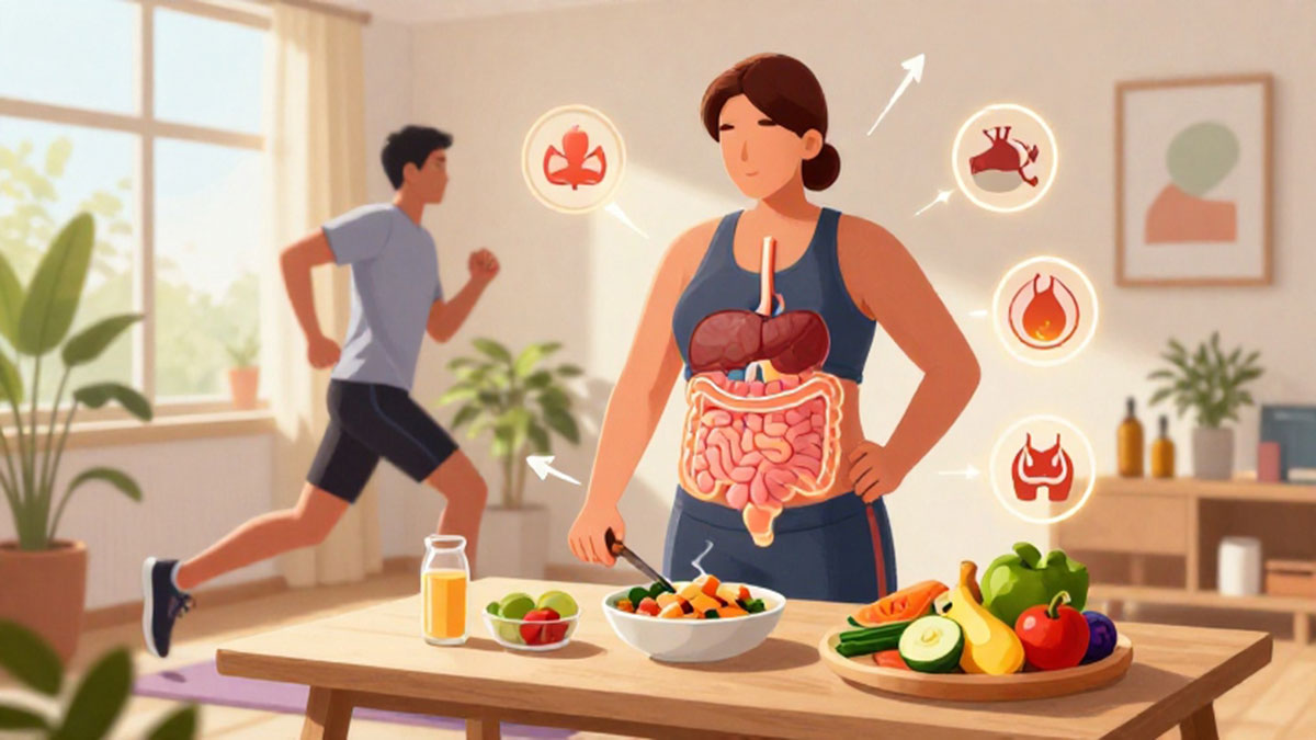 - Latihan kardiovaskular: Jogging, bersepeda, atau berenang selama 30–60 menit setiap hari dapat membakar lemak visceral secara signifikan.